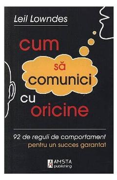 Cum sa comunici cu oricine. 92 de reguli de comportament pentru un succes garantat. Nu numai ca vei sparge gheata, ci ii vei impresiona pe ceilalti cu noile tale abilitati. - LARRY KING Cel mai bun ghid pentru cei isteti… un instrument indispensabil in conversatii. - SALLY JESSE RAPHAEL I-ai admirat vreodata pe acei oameni de succes care, aparent, pareau sa aiba totul? Discuta increzatori la petreceri, vorbesc în cunostinta de cauza la întrunirile de afaceri, au cele mai bune joburi, dau cele mai frumoase petreceri si au cei mai interesanti prieteni. Dar asta nu înseamna neaparat ca sunt mai inteligenti decât tine sau ca arata mai bine. Este vorba pur si simplu de modul în care comunica cu ceilalti. Cu ajutorul celor 92 de tehnici eficiente si usor de înteles propuse de Leil Lowndes, vei descoperi cum sa devii un as al comunicarii, în viata, în dragoste sau în afaceri. Combinând cele mai recente cercetari de specialitate cu spiritul inteligent si cald al observatiilor autoarei referitoare la punctele slabe ale oamenilor, lucrarea de fata iti arata: • cum sa îti faci o intrare memorabila si sa discuti cu oameni pe care ai vrut mereu sa-i cunosti; • cum sa folosesti limbajul corporal pentru a captiva audienta; • cum sa pari o persoana din interior într-o multime de oameni necunoscuti, indiferent de cât de putine lucruri aveti în comun; • cum sa pari întotdeauna o persoana încrezatoare si carismatica, indiferent de locul în care te afli.