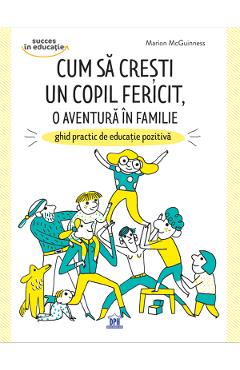 Cum sa cresti un copil fericit, o aventura in familie. Ghid practic de educatie pozitiva Cum sa cresti un copil fericit, o aventura in familie este un ghid practic de educatie pozitiva care are ca scop dezvoltarea unor relatii familiale puternice, sanatoase si constructive, pentru a avea copii impliniti si fericiti. Aceasta carte se adreseaza tuturor viitorilor parinti, tinerilor (sau celor mai putini tineri) parinti, celor care activeaza in domeniul educatiei, bunicilor, unchilor, matusilor si tuturor celor care formeaza impreuna aceasta „casta“ atat de pretioasa pentru ca un copil sa poata creste fericit. Descoperiti un instrument complet care trateaza toate temele vietii de familie: marturii, exemple concrete, liste, sfaturi, ateliere practice, anecdote, biografii si citate ale unor experti. Respectarea emotiilor si a nevoilor, cooperarea si comunicarea nonviolenta, increderea, dragostea si bunavointa sunt cheile de la seiful educatiei parentale pozitive. Marile valori ale familiei, ritmurile de dezvoltare ale copilului, alimentatia, igiena si ingrijirea, echipamentele necesare, jocurile, modalitatile de garda, scoala – toate aceste mari teme ale vietii de zi cu zi a copilului sunt abordate de autor prin intermediul acestui ghid complet si practic, cu scopul de a va sustine si de a va acompania in viata cotidiana.