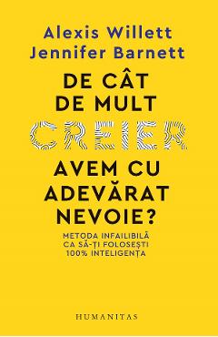 D e cat de mult creier avem cu adevarat nevoie? Metoda infailibila ca sa-ti folosesti 100% inteligenta Aceasta carte vizeaza sa puna-n lumina capacitatile creierului uman – atat in conditii optime, cat si in conditii mai proaste, atat in trecut si prezent, cat si in viitor – si sa reflecteze la ce s-ar intampla fara ele. Sunt prezentate ipoteze provocatoare, experimente fascinante si puncte de vedere ale unor profesionisti. - Conteaza cat de mult creier avem? - Care sunt cele mai importante parti din creier? - Cand ti de ce ni se micsoreaza creierul? - Putem trai cu portiuni din creier lipsa, si cu care anume? - Ce diferente exista de fapt intre creierul barbatilor si cel al femeilor? - Chiar se manifesta la femei fenomenul „baby brain“? - Timpul petrecut in fata ecranelor ne strica creierul? - Daca ne antrenam creierul o sa imbatranim mai sanatos? - Cum ajuta noile tehnologii buna functionare a creierului si performantele noastre cognitive? - Este creierul uman in floarea varstei evolutive, sau viitorul ii va aduce imbunatatiri? Ce poate fi mai fascinant decat sa incercam, iar si iar, sa dezlegam prin noi si noi intrebari si raspunsuri misterul acelei parti din alcatuirea noastra care ne defineste in cea mai inalta masura drept oameni? De cat de mult creier avem cu adevarat nevoie? ne propune o incitanta calatorie prin trecutul, prezentul si viitorul creierului uman pornind tocmai din miezul necunoscutelor despre el: cum si de ce a ajuns sa arate astazi cum arata, cum va arata in viitor. Cartea analizeaza o serie de probleme pe care si le pune orice om curios: Oare avem, fiecare, creierul intreg? Daca da, cat din el ne-am putea permite sa pierdem fara sa ne afecteze traiul normal? Daca nu, cum de se poate supravietui ori chiar trai multumitor fara portiuni din el? Raspunsuri variate si uimitoare se gasesc la fiecare pas in toate capitolele cartii, fie ca veti alege sa cititi studiile de caz si scenariile ipotetice, interviurile cu experti din domeniul neurostiintelor sau cele mai noi teorii si cercetari despre functionarea cerebrala prezentate de autoare.