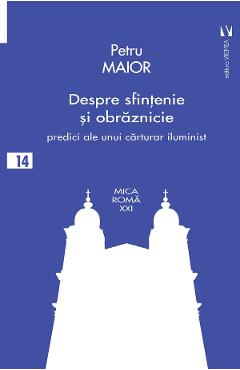 Despre sfintenie si obraznicie. Predici ale unui carturar iluminist. Mica Roma XXI Petru Maior (1760 1821) este cel mai vizibil si eficient scriitor dintre membrii Scolii Ardelene. Afirmatia se intemeiaza pe reusita publicarii operei sale in timpul vietii. Exceptie fac doua manuscrise teologice Procanon (1783) si Protopopadichia . Ultima este o lucrare redutabila, finalizata si semnata la Reghin, in 1795, care tradeaza, in egala masura, eruditie, spirit critic si uimitoare mobilitate intelectuala, ilustrand foarte bine epoca, strabatuta de tensiunea optiunii intre fidelitatea fata de traditie si ispita catolicizarii.Formularile, structura ideatica a lucrarii, precum si constructia discursului deconspira atasamentul lui Petru Maior fata de valorile Reformei catolice. Din cele 74 de predici numerotate, organizate in trei parti inegale, noi am selectat 40 pe care le am considerat folositoare si relevante pentru cititorul zilelor noastre. Am pastrat organizarea initiala: partea 1 carea cuprind predichele de la Duminica Vamesului pana la Duminica Tuturor Sfintilor continea 23 din care noi am ales 17 predici elaborate; partea 2 carea cuprind predichele de la duminica a doao saptamana dupa Rusalii , pana la duminica a 32 dupa Rusalii reproducea 31 de predici ample, din care noi am selectat 13 texte si partea 3 carea cuprinde predichele Sarbatorilor preste tot anul ne oferea 20 de cuvantari concise, din care noi ne am oprit la 10. -Laura Stanciu