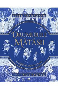 Drumurile matasii. O altfel de istorie a lumii Ilustratii: Neil Packer Copile, porneste intr-o aventura spre Orient si descopera o istorie a lumii uimitor de originala!Peter Frankopan, celebru autor si istoric, analizeaza legaturile care au luat nastere intre popoare, comert, epidemii, religie, aventura, stiinta si tehnologie in aceasta carte extraordinara despre cum Orientul s-a unit cu Occidentul pornind de la o calatorie remarcabila – calatoria de-a lungul Drumurilor Matasii.De la Codul lui Hammurabi si maretul Imperiu Persan, la hunii cei cumpliti, ascensiunea Europei, cele doua razboaie mondiale si politica actuala, Drumurile Matasii strabat vremurile si istoria, impletind firele care leaga diferite popoare, imperii si continente intr-o fascinanta istorie a lumii. Adunand povesti despre fiecare aspect al societatii, calatoria fabuloasa in care ne invita Frankopan, inspirata din triumful sau literar Drumurile Matasii si magistral ilustrata de Neil Packer, este o istorie a lumii care nu poate lipsi din biblioteca niciunui copil.