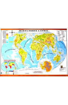 Harta de perete a lumii. Harta Fizica + Harta Politica Harta are formatul 700 x 500 mm Plastifiata fata/verso cu agatatoare