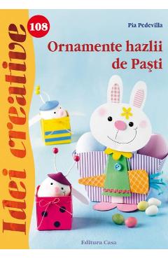 Ornamente hazlii de Pasti - Idei creative nr.108 Odata cu sosirea primaverii asteptam cu nerabdare Sarbatorile pascale. Cu ocazia acestora simtim nevoia sa aducem un pic de culoare in casele noastre, incantati ca am scapat de anotimpul rece. Din aceasta carte veti invata cum sa confectionati suporturi pentru oua, cutii de cadouri, ornamente pentru mese festive, toate avand forme de animalute hazlii care ne sugereaza Sarbatorile pascale: oite, iepurasi, gainuse etc. Pe langa decoratiunile pentru ferestre sau pentru masa de Pasti, se pot realiza si mici cadouri cu care ii puteti surprinde pe cei dragi. Urmand pasii de lucru descrisi in detaliu si tiparele atasate, se pot confectiona usor toate modelele din carte, astfel incat si cei mai putin experimentati se pot apuca de lucru cu incredere. Recomandam acest volum scolilor si gradinitelor, deoarece confectionarea ornamentelor din hartie dezvolta aptitudinile manuale ale copiilor; in plus, figurinele realizate vor umple de bucurie asteptarea primaverii.