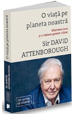 Impartim Pamantul cu lumea vie - cel mai remarcabil sistem de sustinere a vietii imaginabil, construit in miliarde de ani. Stabilitatea planetei a inceput sa fluctueze imediat ce biodiversitatea ei a intrat in declin. Prin urmare, pentru a reface stabilitatea planetei noastre va trebui sa-i refacem biodiversitatea, insusi lucrul pe care l-am eliminat. Este singura cale de scapare din aceasta criza pe care noi insine am creat-o. Trebuie sa resalbaticim lumea. Am 94 de ani. Am trait o viata extraordinara.Abia acum apreciez cat de extraordinara.In tinerete simteam ca explorez salbaticia, ca traiesc in mijlocul naturii virgine - dar era o iluzie. Tragedia vremurilor noastre se intampla peste tot in jur, greu observabila de la zi la zi - pierderea locurilor salbatice ale planetei si a biodiversitatii ei.Am fost martorul acestui declin. O viata pe planeta noastra este depozitia mea scrisa si o viziune pentru viitor. Este povestea felului in care am ajunsa sa comitem asta, cea mai mare greseala a omenirii, si a celui in care am putea sa o indreptam daca actionam acum.Avem o ultima sansa finala de a crea caminul perfect si a reface lumea minunata pe care am mostenit-o. Nu trebuie decat sa vrem. -Sir David Attenborough Cartea a fost scrisa si produsa in parteneriat cu WWF. World Wide Fund for Nature este una dintre cele mai importante organizatii internationale care deruleaza in peste 100 de tari proiecte pentru conservarea naturii. Impreuna cu WWF-Romania, te provocam sa citesti mesajul lui Attenborough si sa semnezi Legamantul pentru Pamant.Documentarul A Life On Our Planet , inspirat de carte, poate fi vizionat pe Neflix.